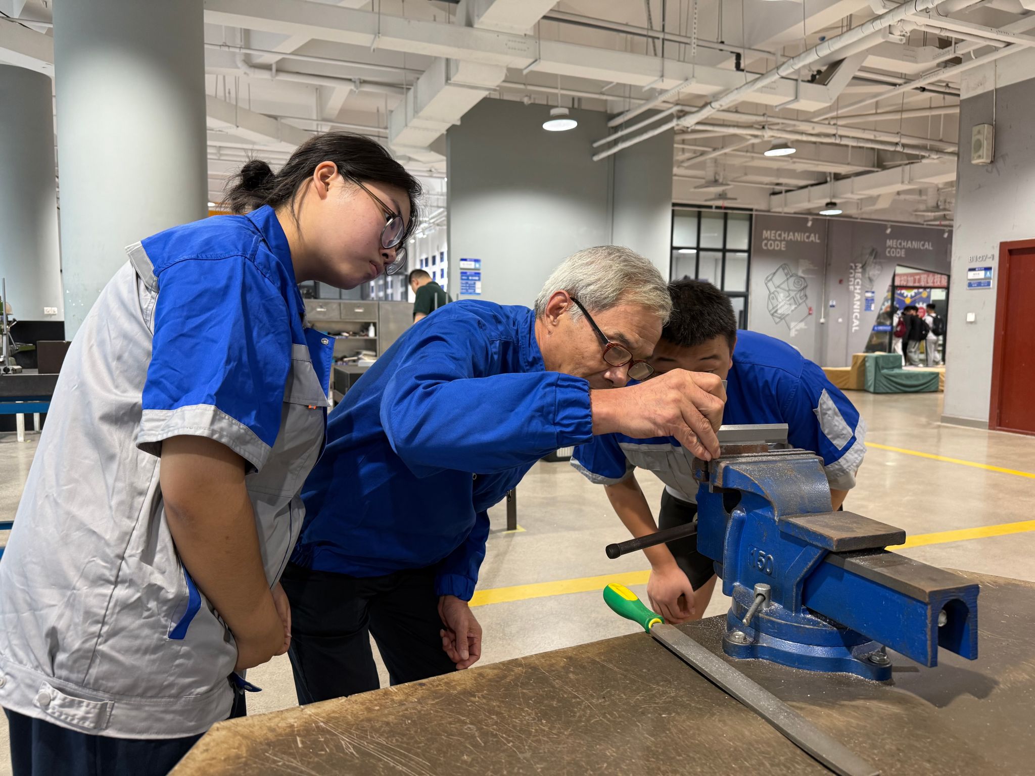讲座结束后,顾大师在实训中心为学生们讲解了钳工实训要领,顾大师说,“职业本科教育不是‘技能+学历’的简单叠加,而是要在掌握扎实操作技能的基础上,学会用理论指导实践、用创新突破瓶颈。你们是学校升格后的首届学生,更要扛起‘标杆’责任,成为既懂技术原理、又能精准实操的复合型技能人才。”