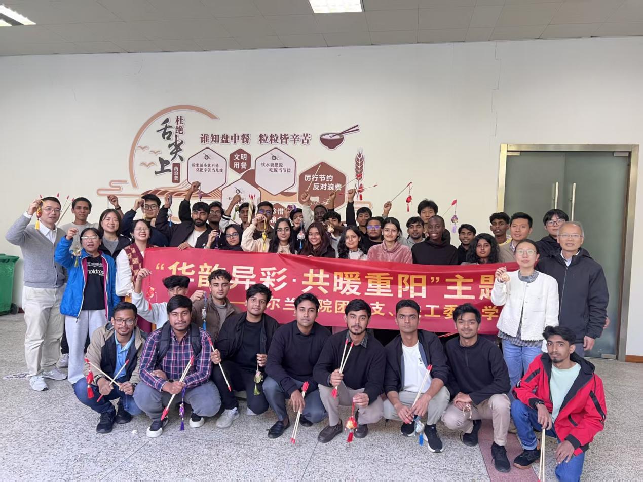 金秋送爽,菊香满园。10月29日,一场主题为“华韵异彩,共暖重阳”文化雅集活动在教工餐厅温情上演。学校关工委秘书长周陆飞、学院关工委副主任徐晴、退休教师董芳,与50余名中外学生以及爱尔兰学院教师们欢聚一堂,共同体验中华传统文化的魅力。活动以“一块重阳糕,一杯菊花茶,一份跨越年龄与国界的温暖”为情感纽带,通过沉浸式文化互动,引导青年学生深入感悟重阳节所蕴含的尊老敬老传统美德。