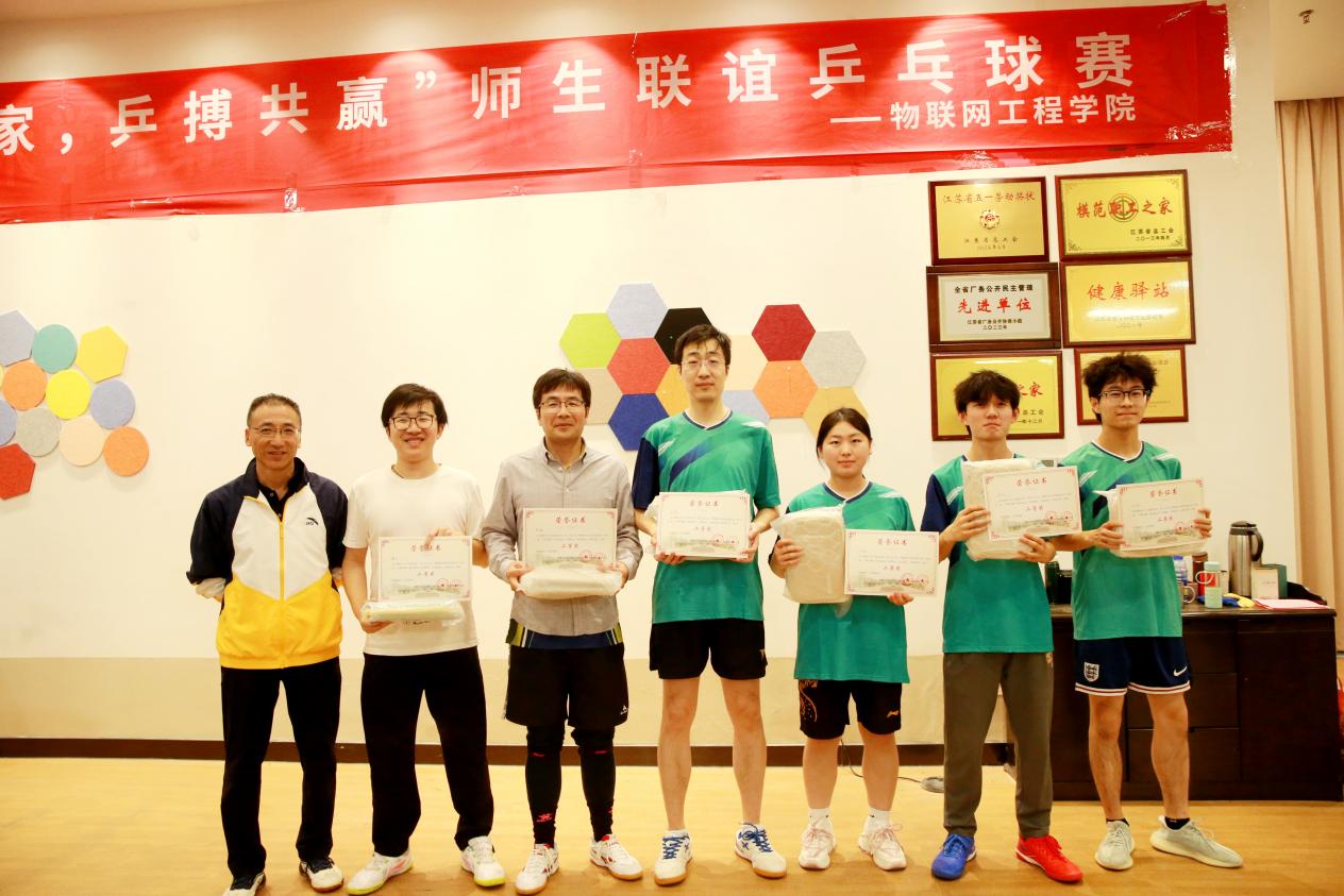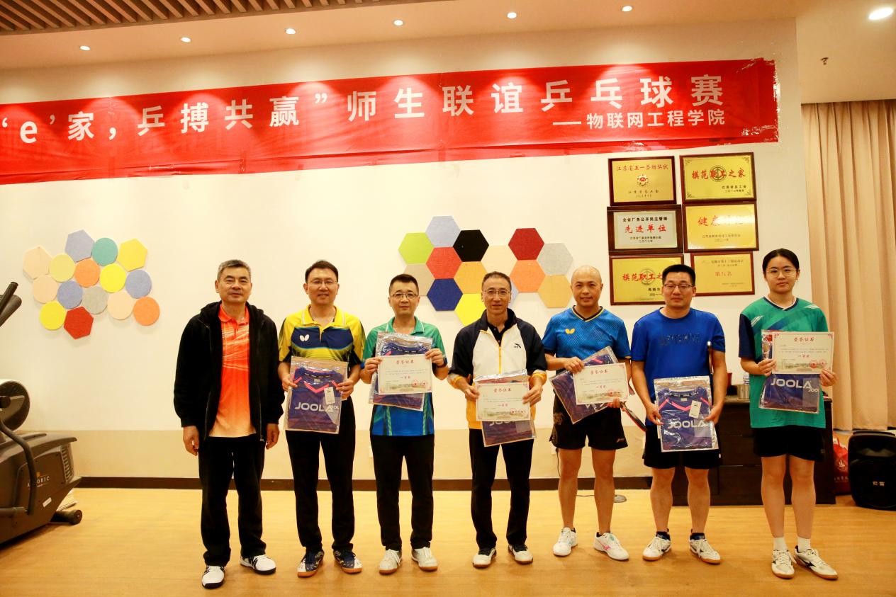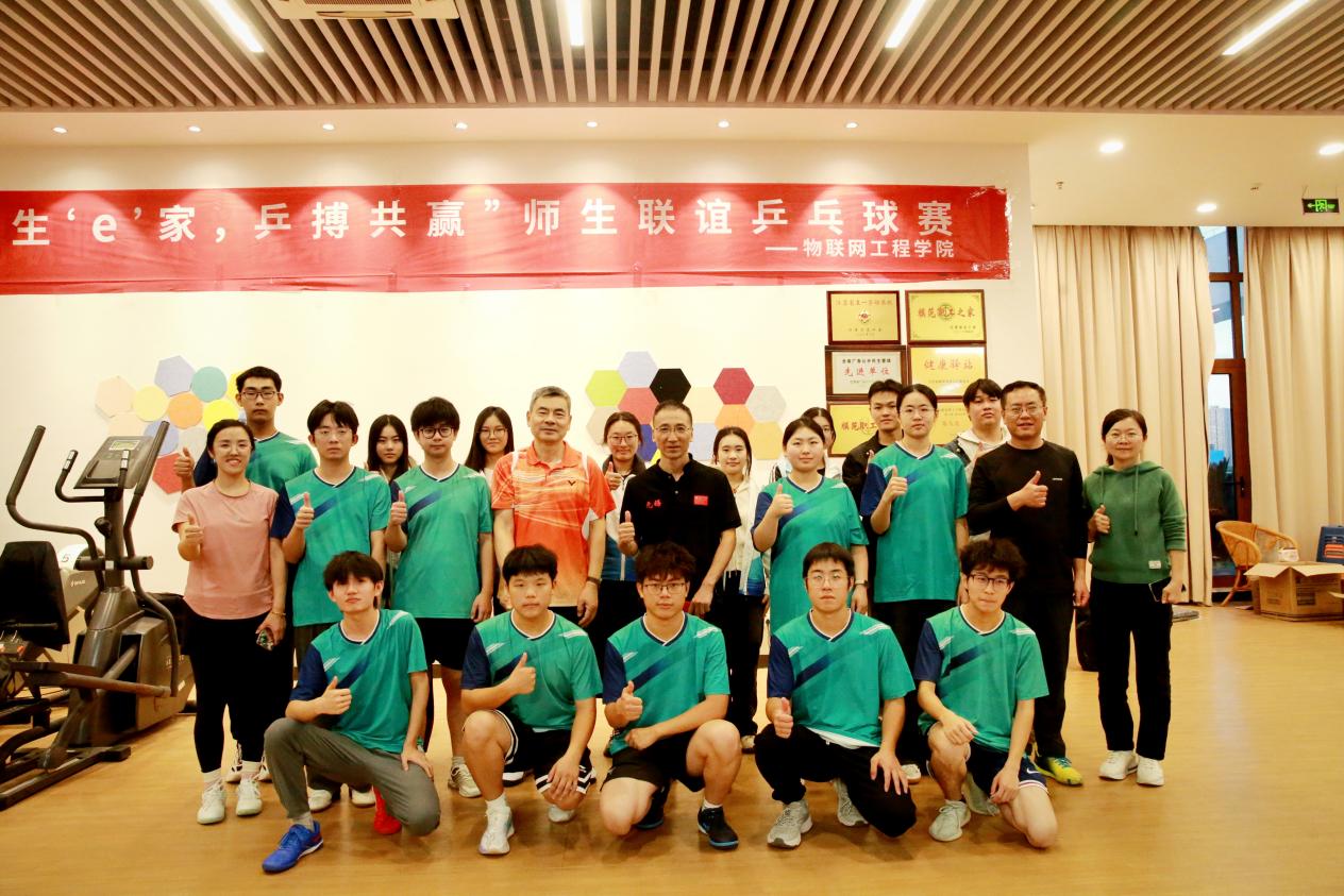 为深入贯彻“三全育人”理念,进一步构建和谐融洽的师生关系,丰富校园文化生活,11月11日下午,由物联网工程学院关工委牵头,联合校乒乓球协会、校工会共同举办的“师生‘e’家,‘乒’搏共赢”师生联谊乒乓球赛在学校综合楼乒乓球馆顺利举行。