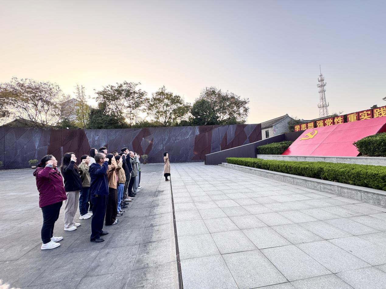 红色研学悟初心,薪火相传强担当。14日下午,全体党员教师抵达高邮侵华日军向新四军投降处旧址,于云波带领青年教师们驻足于雕塑前,结合自身经历与青年教师交流感悟:”红色历史是最好的教科书,年轻一代要传承好红色革命精神,我们要将抗战精神融入课堂教育,培养有爱国情怀和责任担当的新时代青年大学生。”参观结束后,全体教师党员在胜利广场前面向党旗重温入党誓词,用铿锵有力的声音表达对党永远忠诚的决心。