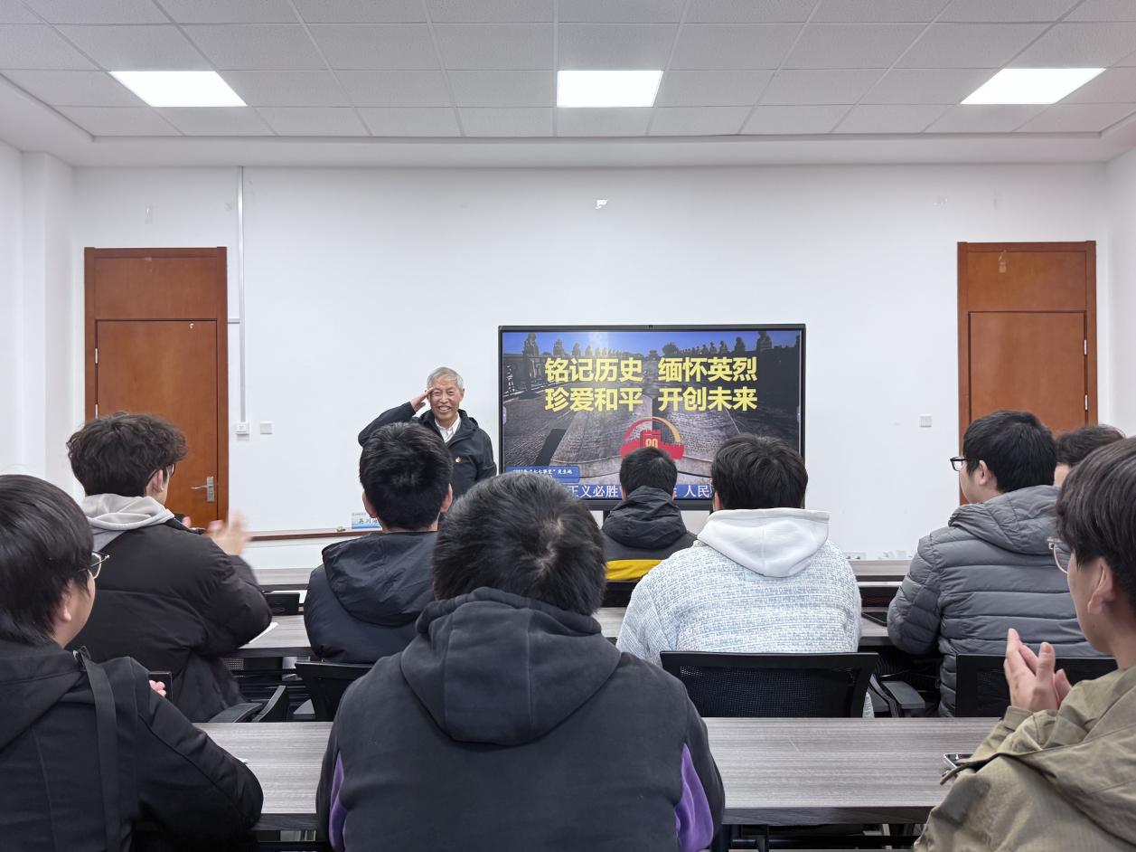 为深入学习宣传贯彻党的二十届四中全会精神,铸牢中华民族共同体意识,引导各民族青年学子感悟思想伟力、凝聚奋进力量,10月18日,无锡职业技术大学机械工程学院分党校联合学院关工委,特别邀请全国关心下一代工作先进工作者、无锡市关工委宣讲团成员蒋川海同志,以“铭记历史,吾辈自强”为主题讲授纪念抗日战争胜利80周年专题党课。学院近40名多民族青年团员参与学习。