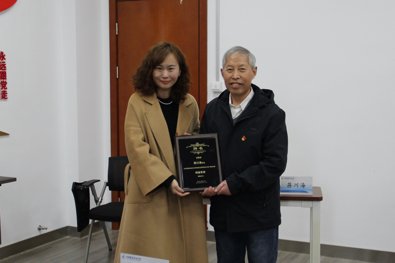 活动现场,机械工程学院党总支副书记王丽梅对蒋老师的到来表示衷心的感谢。王丽梅向各位师生介绍了学院关心下一代工作的基本情况,诚挚感谢蒋川海同志担任学院关工委校外导师,并代表学院关工委为蒋川海老师颁发聘书,正式聘请其为机械工程学院关工委“银发先锋”特邀导师。她鼓励在场各民族青年团员要强化理想信念,在学习生活中互帮互助、同心同行,共同筑牢中华民族的坚实根基。