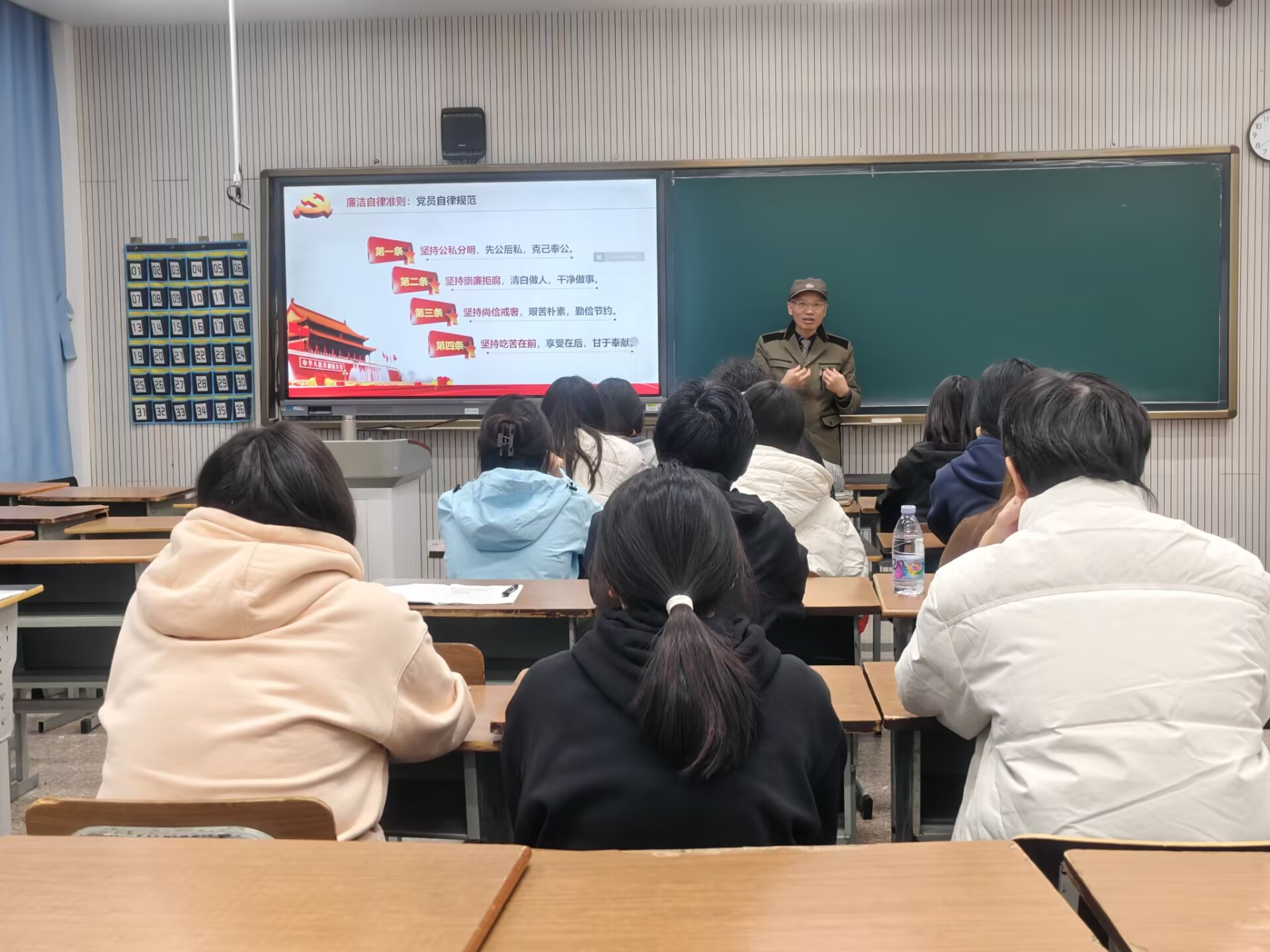 《中国共产党廉洁自律准则》是党执政以来第一部坚持正面倡导、面向全体党员的规范全党廉洁自律工作的重要基础性法规。周陆飞带领全体学员原原本本、原汁原味学习了8条、281字内容,指出要成为一名合格的共产党员,必须加强党性修养,保持和发扬党的优良传统作风,使廉洁自律规范内化于心、外化于行,坚持理想信念宗旨“高线”,永葆共产党人清正廉洁的政治本色。紧接着,周陆飞向学员们解读了《中国共产党纪律处分条例》。周陆飞强调,广大学员要把学习贯彻习近平总书记关于全面加强党的纪律建设的重要论述,与学习贯彻2024年新修订的《中国共产党纪律处分条例》紧密结合起来,在认真学纪、准确知纪、深刻明纪、严格守纪上下功夫,形成遵规守纪的高度自觉,切实维护纪律的刚性、严肃性。