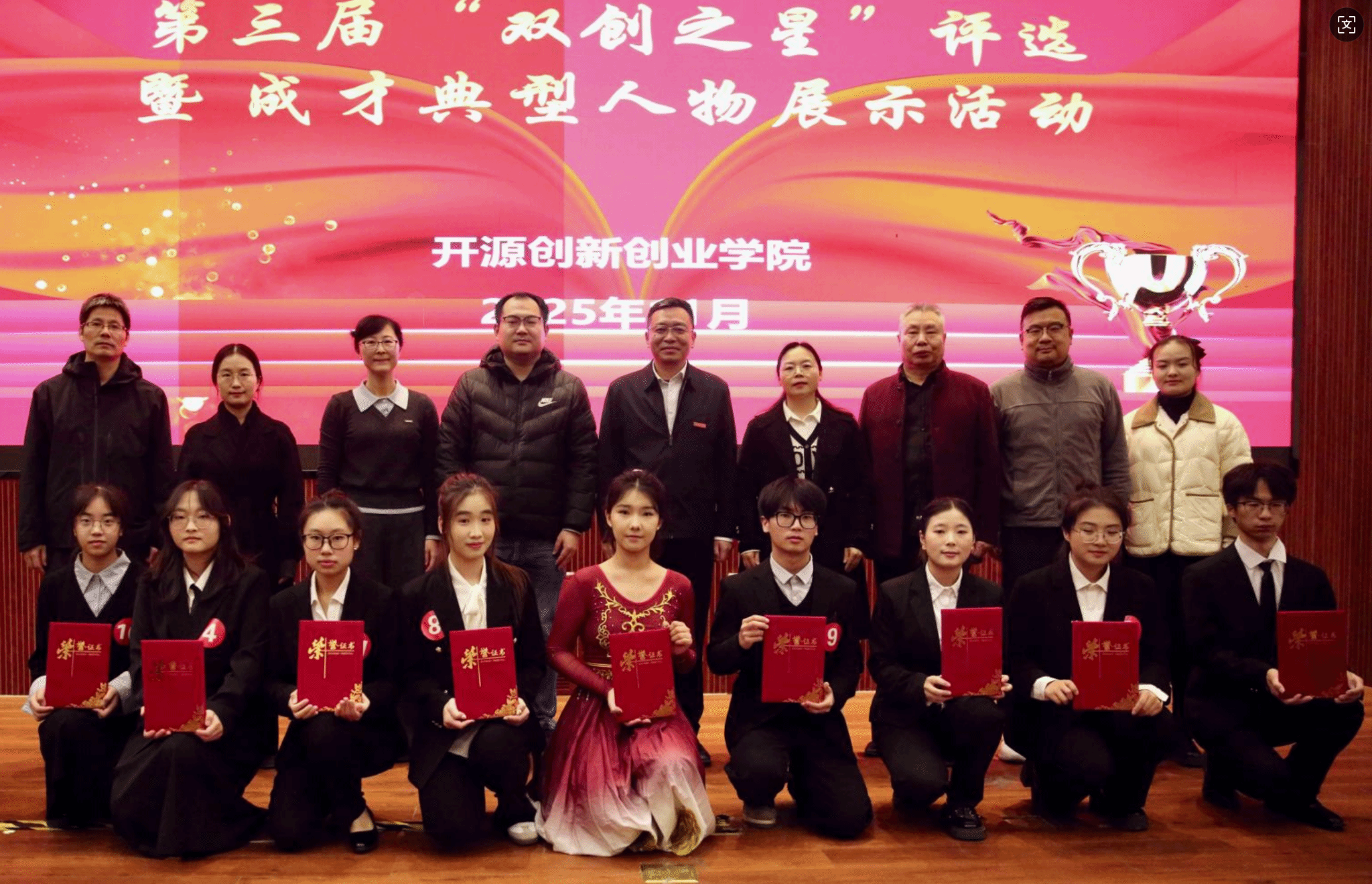 此次“双创之星”评选活动,不仅是对双创学院育人成果的一次检阅,更为学子们搭建了交流学习、展示自我的优质平台,充分发挥了优秀学子的典型示范引领作用,是学院关心关爱青年学生全面成长的有力举措。学院表示,将以此次活动为契机,进一步深化双创育人改革,激发学子创新活力,引导更多青年学子以榜样为镜、向优秀看齐,主动锤炼本领,为学校事业高质量发展贡献青春力量。
