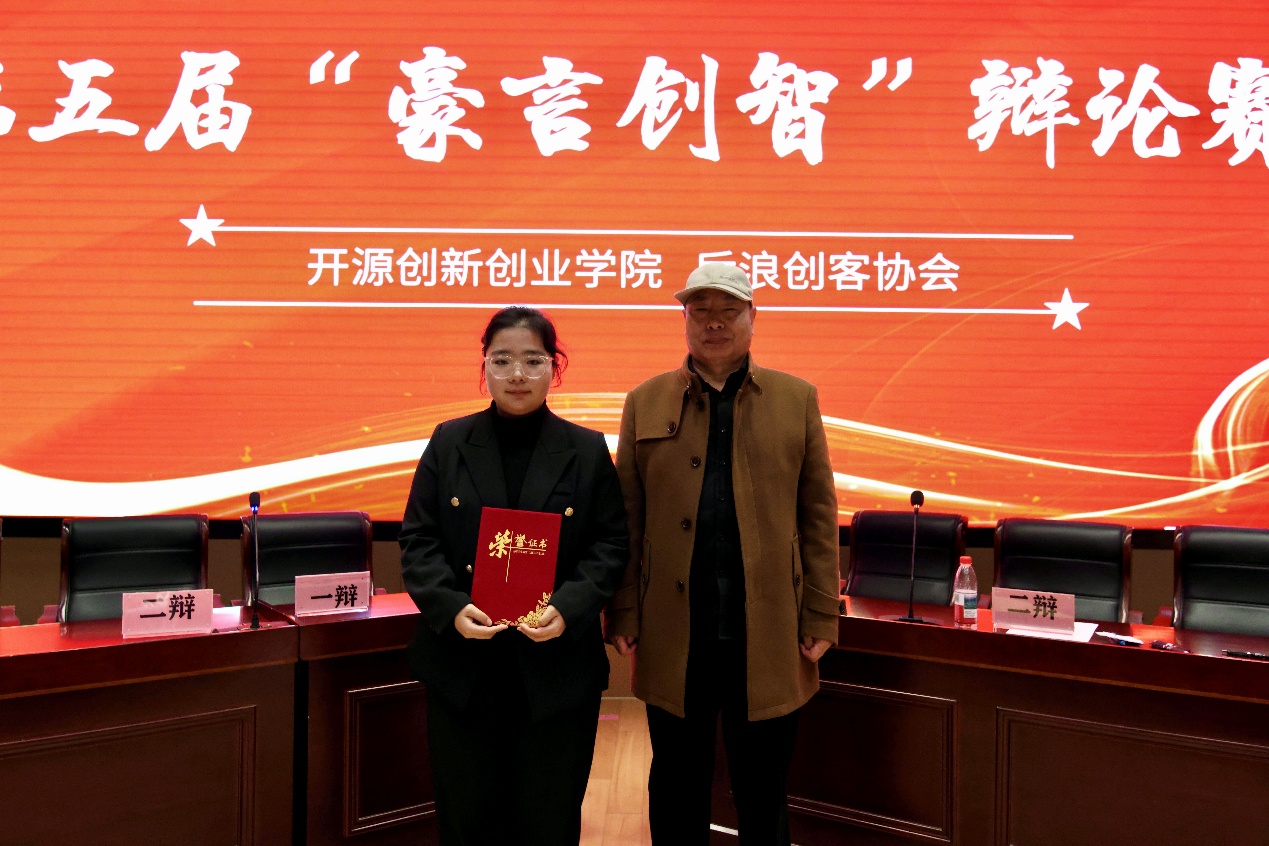 李万福老师为最佳辩手颁奖