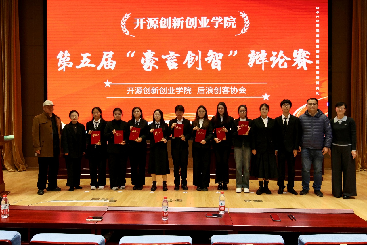 为丰富校园文化生活,锻炼学生思辨能力,11月至12月,开源创新创业学院关工委举办第五届“豪言创智”辩论赛,大赛历经初赛、复赛、决赛三个赛段,受到广大同学的关注与欢迎。12月7日晚,本届辩论赛决赛在厚德楼一楼报告厅隆重举办,无锡经开区中学语文退休高级教师李万福、双创学院辅导员、班主任、后浪创客协会指导教师以及木樨辩论社负责人到场担任评委。