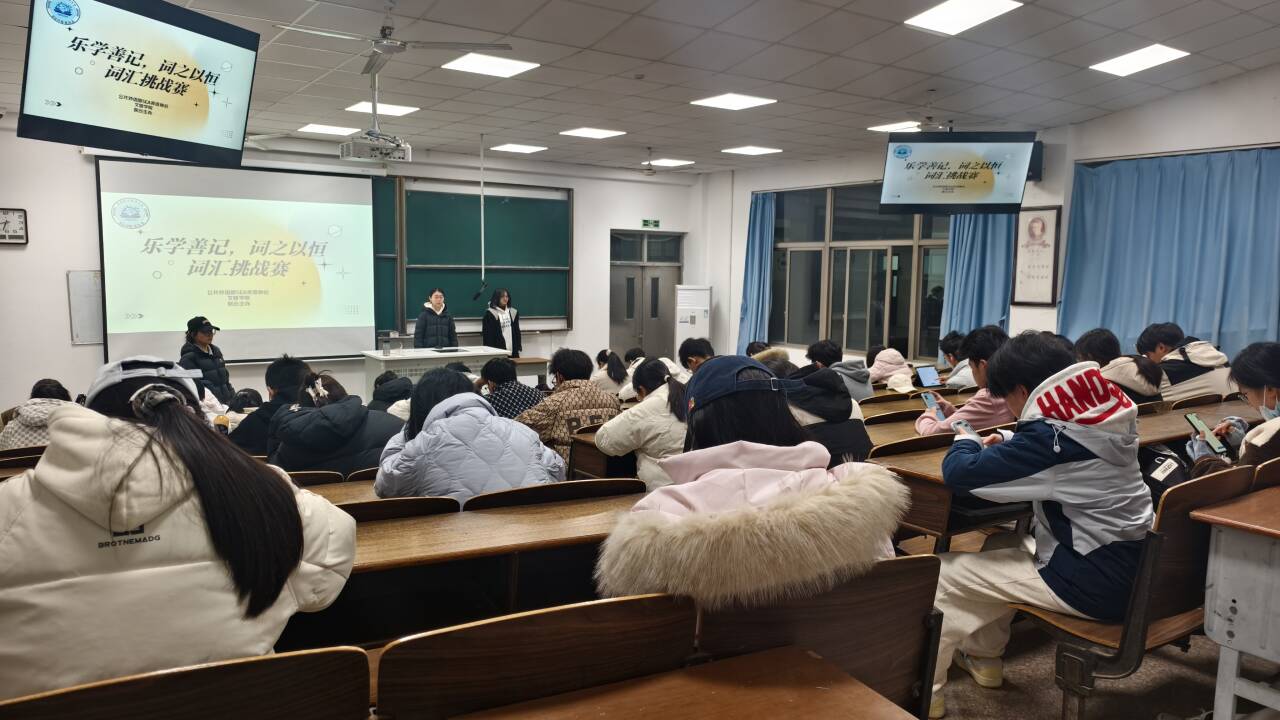 12月9日,为期一个月的“乐学善记∙‘词’之以恒”单词打卡暨词汇挑战赛圆满落幕,此项活动由公共外语部和文旅学院联合举办,文旅学院关工委指导,颁奖仪式在国际交流中心304会议室举行,为本次英语学习活动画上圆满句号。