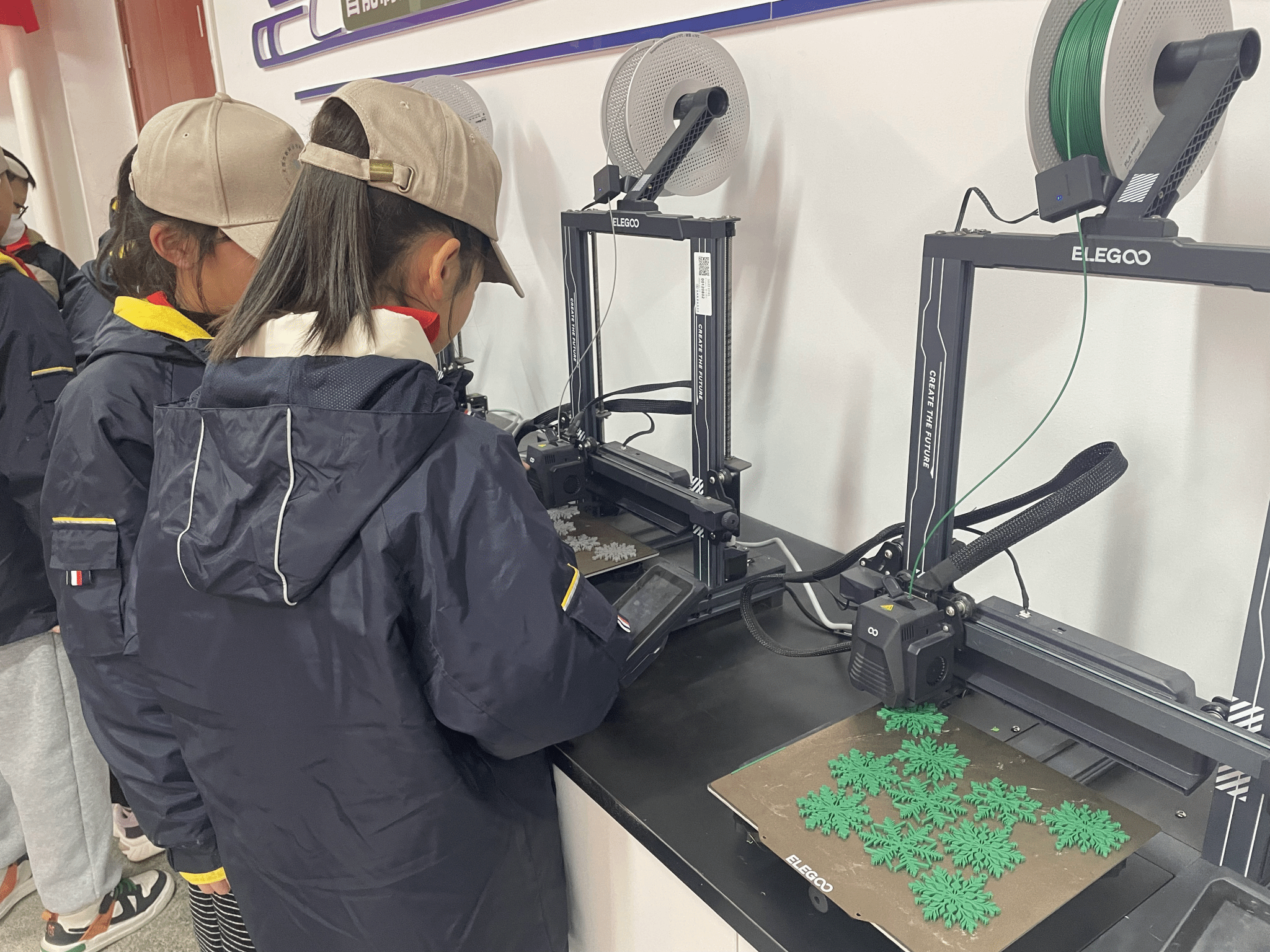 随后在中小学生职业体验中心,刘召杰老师重点带领同学们体验了3D打印、智慧农场及智慧家居模型三大特色项目。在3D打印区,大家围在设备旁认真观看模型打印全过程,部分同学还亲手操作简易打印程序,亲身感受科技创造的乐趣;在智慧农场展区,同学们通过互动装置观察智能灯光、环境监测等场景,直观了解现代农业科技的应用;在智慧家居体验区,大家动手操作模型,尝试通过智能终端控制灯光、家电等,感受科技给生活带来的便捷,在丰富的实践中拓宽了职业认知。
