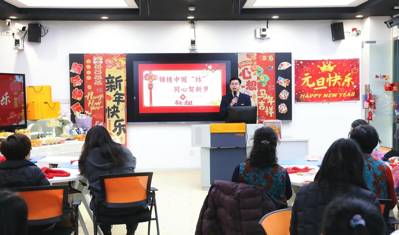随后,学院党总支书记谢欢发表致辞。他进一步阐释“锦绣”象征女教职工才华与学院成就,“中国结”寓意团结同心,充分肯定了女教职工与关工委老同志们在育人工作中的贡献,并代表学院党总支向大家致以诚挚感谢和崇高敬意。他勉励大家在新的一年里继续凝心聚力、携手同行。