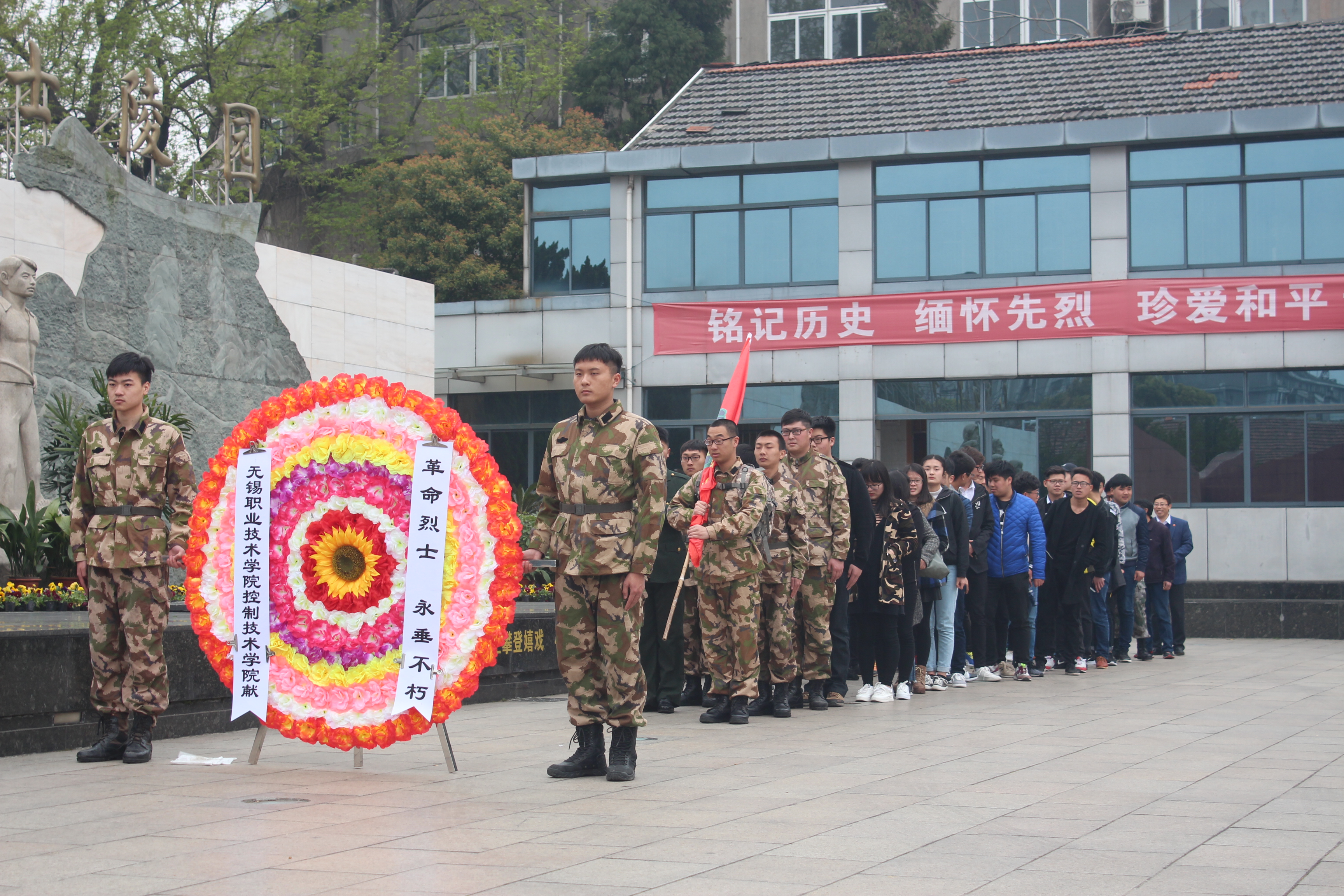 为凭吊英勇牺牲的烈士,重温革命烈士的光辉历史,缅怀先烈们的丰功伟绩,以此弘扬爱国精神,激励莘莘学子继承先烈遗志,传承革命烈士艰苦奋斗精神,奋力拼搏,勇于奉献,早日成为祖国栋梁之才。4月4日下午,控制技术学院关工委组织40余名入党积极分子前往无锡革命烈士陵园进行了祭扫活动,在关工委倪森寿、张格物、花树洋三位老师带领下,向烈士敬献了花圈,活动由花树洋老师主持。