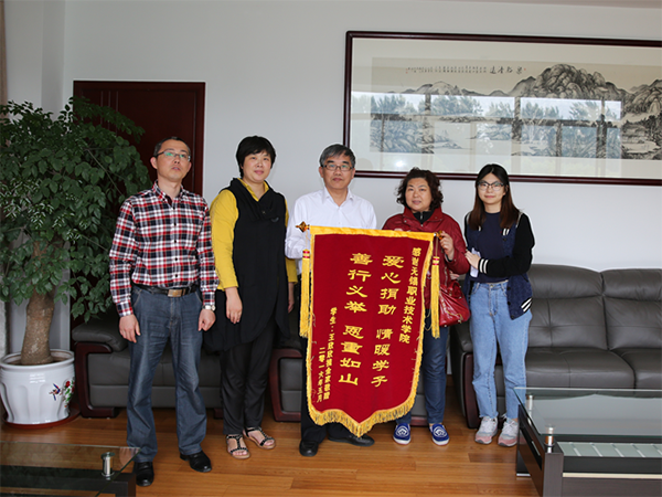 6月1日下午,微电子31431班王欣欣同学与母亲一同来到学校,将一面锦旗交到华坚副校长和物联网技术学院党总支副书记徐悦手中,感谢我校在王欣欣住院期间发动各方力量伸出援手。