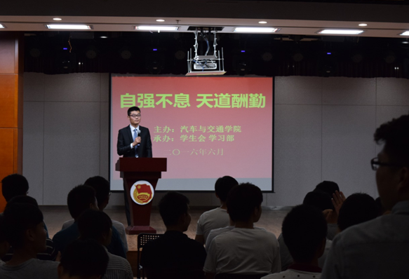 为帮助广大在校大学生树立学习榜样,坚定人生理想与信念,科学规划职业生涯,2016年06月06日下午17:00,学生会学习部在青春剧场举办了“自强不息,天道酬勤”优秀毕业生报告会,2013级刘迪、陈洪亮、朱缓缓三位优秀毕业生应邀参加报告。此次会议由韩运华同学主持。